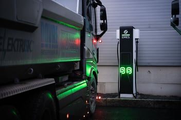 Det som skiller seg spesielt ut ved anlegget, er en høyeffekts ladestolpe som kan levere 2x500 kW gjennom væskekjølte ladekabler. Systemet setter en ny standard for lynlading av elektriske tungbiler, og dette er bare begynnelsen. I tiden fremover skal vi ut med anlegg som kan levere 800 kW gjennom det samme systemet. Kombinert med markedets klart høyeste effekt i sentralskap og ledende flåtestyring skal vi i EMES gjøre vårt for å legge til rette for elektrisk tungtransport.